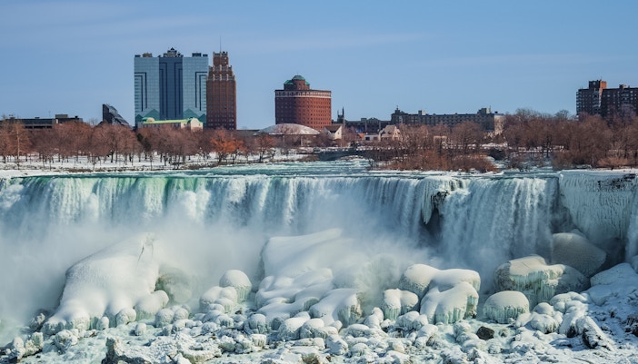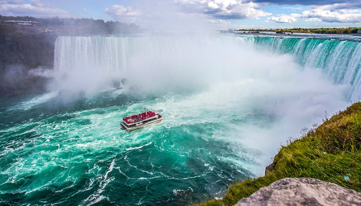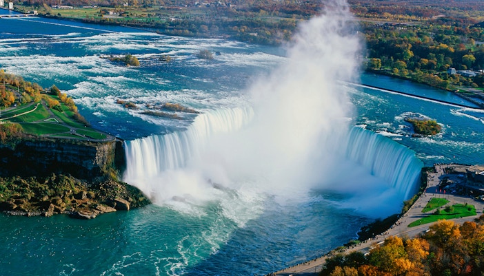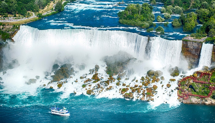 Con 2 649 788 de litros de agua vertiéndose por el borde por segundo a unos 40 kilómetros por hora, las cataratas del Niágara son las mayores de Norteamérica por volumen y anchura.