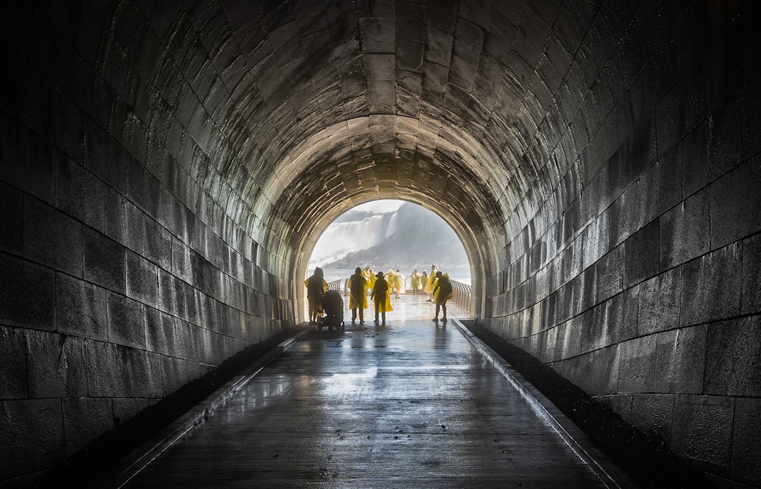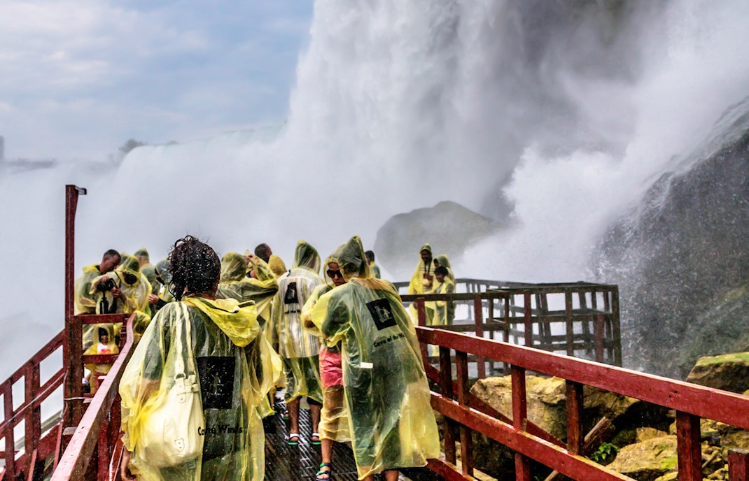 L'exploration de la caverne des Vents des chutes du Niagara commence par un trajet pittoresque en ascenseur qui vous emmène à 53 mètres dans les gorges du Niagara. En descendant, vous ressentirez une forte poussée d'adrénaline tandis que vous verrez les chutes s'élever au-dessus de vous et l'eau puissante se déverser dans votre direction.