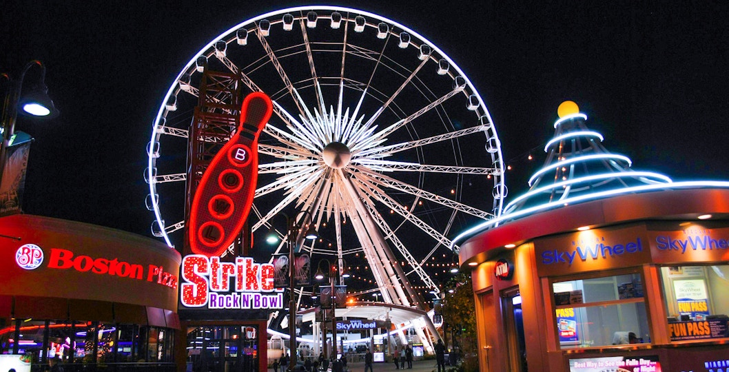 The SkyWheel operates year-round, including during winter when the gondolas are climate-controlled with heating for the cold weather.